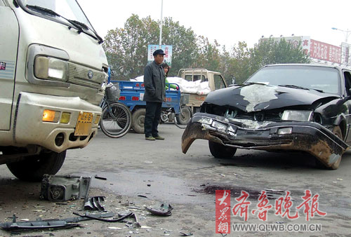 29日下午1点30分左右,临沂市区蒙山大道与育才路交会处北,一辆黑色轿车与一辆小货车相撞,轿车车头被撞烂,小货车一侧被撞伤,所幸无人员伤亡。据介绍,两个司机是因为观看路边行人纠纷,注意力分散,导致两车撞在了一起。