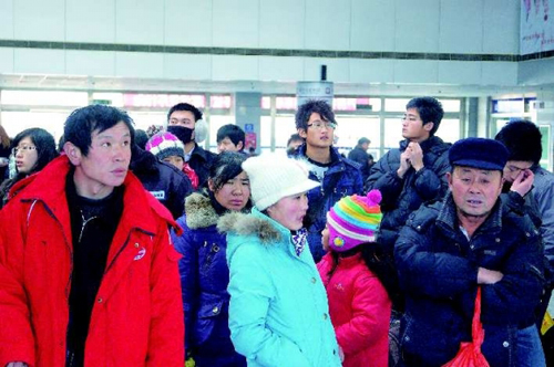 1月16日,长途汽车站内旅客们急切盼望客车到来。段学虎摄
