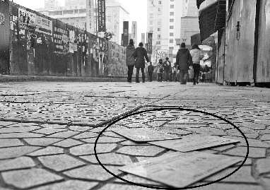 走在商场附近的马路上,随处可见被丢弃的广告磁卡。 王笑 摄