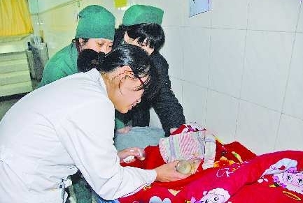 本报96706热线消息(见习记者 李钢)“这里有一个弃婴!”19日下午2点左右,齐鲁医院急诊科护工李师傅在给病人安排病床时,发现一名患有先天性心脏病的弃婴。 19日下午2点左右,齐鲁医院急诊科护工李师傅告诉记者,“当时孩子被一个红色的小褥子裹着。”在孩子的包裹里,医护人员发现一张皱皱巴巴的心脏超声检查图,图上的医院名称等内容已被人撕去。检查结果显示,婴儿患有先天性心脏病,房间隔缺损,完全性肺静脉异位引流,肺高压。在检查图反面,歪歪扭扭地写着几句话:“求求你们有钱人救救孩子吧!因为我们太穷救不了她,求求好心人!”纸上还备注孩子是2010年12月29日出生的。 “我们发现孩子时,裹孩子的褥子里还放着奶瓶,里面的奶还温乎,应该是刚刚被人遗弃。”急诊科戴秘书介绍说,中午有导医好像在医院大厅看到过孩子的母亲抱着孩子,那位母亲穿着红衣服红鞋,“挺惹眼的”。