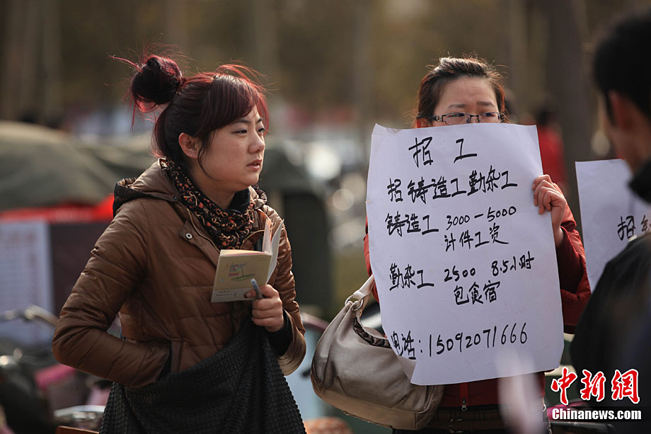 2月10日,山东省即墨市举办“就业开门红”大型招聘活动,据部分招工企业介绍,大多数企业以高薪吸引人才,而许多求职者对工资的期望又比较高,因此形成了用人单位招工人难、求职者找工作难的“两难”境地。梁孝鹏 摄