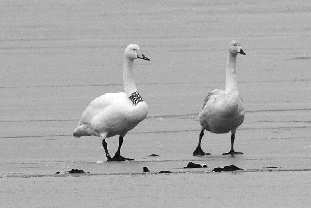 脖颈处有标志的大天鹅来自蒙古。 姜胜勇 陈海芹 摄