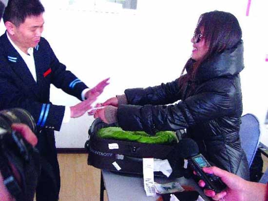 4月3日早上8点15分,记者赶到出租车公司时,的哥王升伟已经将捡到的行李箱带了过来。8点30分,失主刘女士也赶了来。经现场查验,该行李箱确实是刘女士的。行李箱里装着9.1万多元现金、10万元承兑支票,还有银行卡、身份证等物品,总价值20余万元。核对清楚后,刘女士当场拿出1万元现金作为酬谢,王升伟一再谢绝。刘女士记下了他的手机号,并表示“下次来青岛还坐你的车”。