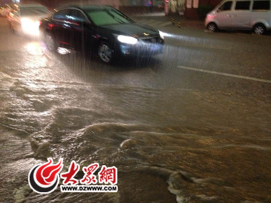 由于昨天济南市气象局已发出预报,称今天傍晚将济南将迎大暴雨,所以大众网记者在路上看到,行人多随身携带了雨具。但由于雨势凶猛,和平路历山路路口、大明湖西南门、南门路口、生产路铁路桥等路段短时间内便形成了积水,变身“河道”。且正值下班高峰期,暴雨造成多处路段出现短时间拥堵。