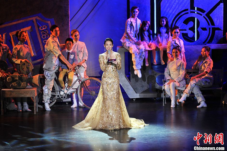 4月16日,第四届北京国际电影节举行开幕式。图为开幕式现场章子怡金色礼服登台。中新网记者 金硕 摄