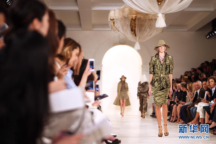 9月11日,在美国纽约,模特展示拉夫·劳伦品牌时装。当日,拉夫·劳伦时装品牌在2015纽约春夏时装周上发布新品。本届时装周当天落下帷幕。 新华社记者 秦朗 摄