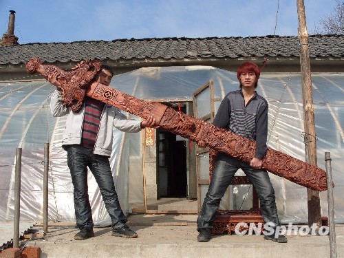 孙立满告诉记者,这把桃木盘龙宝剑,从整体设计、选料、雕刻到后期处理等,都是由他一人独立完成。他说,从2008年2月开始制作,至2009年12月雕刻完成,他用了近两年的时间制成该剑。