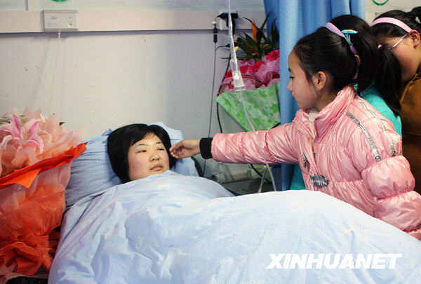 这是获救学生来到医院看望董金凤(3月6日摄)。