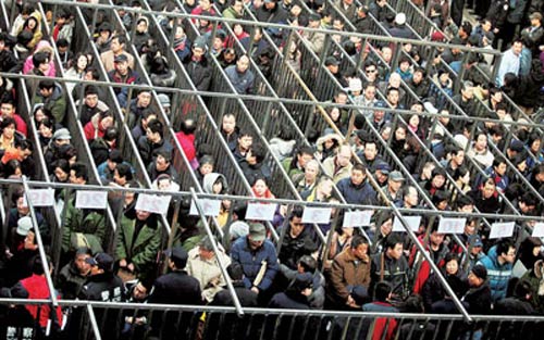 昨日,用于分流的隔离护栏内挤满了等候签约的居民。昨天8时,通州运河核心区及西海子棚户区拆迁签约正式启动,经过了100多个小时的现场排队,居民按顺序进入办公室,登记、录入信息、签约。至16时许,4498户居民完成签约,占此次拆迁总数的近一半。据悉,他们大多选择定向安置房,将按照签约顺序分批选房。