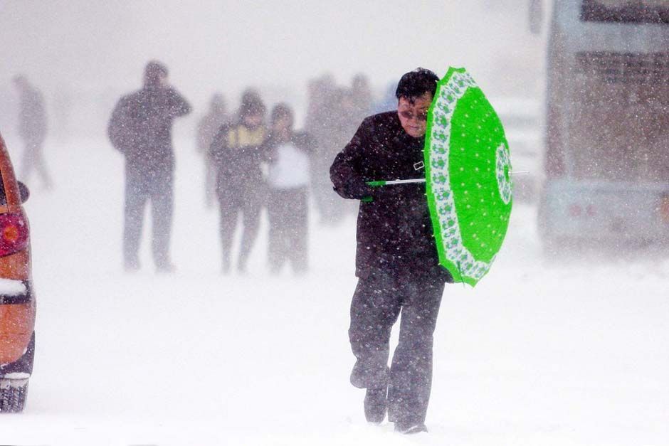 4月13日,哈尔滨,市民在风雪中艰难行走。 从12日中午开始,哈尔滨突降大雪。黑龙江省12日发布的暴雪蓝色预警和道路结冰黄色预警称,哈尔滨、佳木斯等地局部有大到暴雪。目前风雪仍在持续。