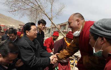 胡锦涛在玉树灾区...