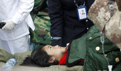 4月20日,在青海玉树结古镇,一名小女孩在用作临时住所的帐篷外吃方便面。新华社记者周磊摄