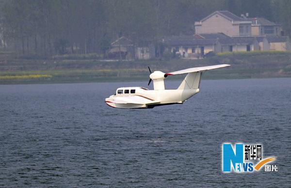 当日,由江苏恒川集团研发的新一代地效翼船(俗称“水上飞机”)“天使鸟”号在南京金牛湖两起两降试飞成功。该型地效翼船宽10.7米,长12.6米,高3.5米,是中国企业生产出的完全具有自主知识产权的地效翼船。地效翼船是一种介于飞机和船舶之间的新型高速运载工具,可以在高速公路或水面上起飞、降落。新华社发(吴俊 摄)