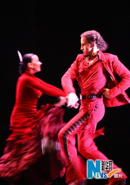 5月13日,西班牙国家芭蕾舞团演员在表演舞蹈。当晚,西班牙国家芭蕾舞团在上海世博中心举行舞蹈表演,演员们激情、华丽的表演带领观众体验西班牙风情。 新华社记者王迎摄