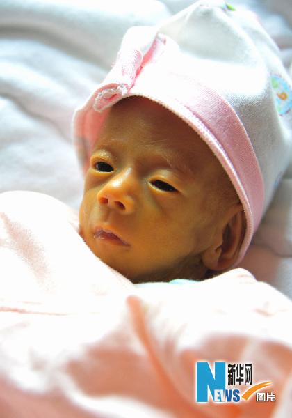 今年2月24日,一名体重仅有670克的早产“袖珍宝宝”在湖北恩施降生,经过恩施州湖北民族学院附属医院近三个月的精心护理,“袖珍宝宝”闯过了呼吸关、营养关、感染关,并于近日出院。目前,“袖珍宝宝”除患有胆汁淤积综合症外,其它一切正常。医院专家称“袖珍宝宝”创造了医学奇迹。眼下,“袖珍宝宝”父母还欠下医院10多万元医药费,后期的治疗费难倒了一家人。新华社发(杨顺丕 摄)