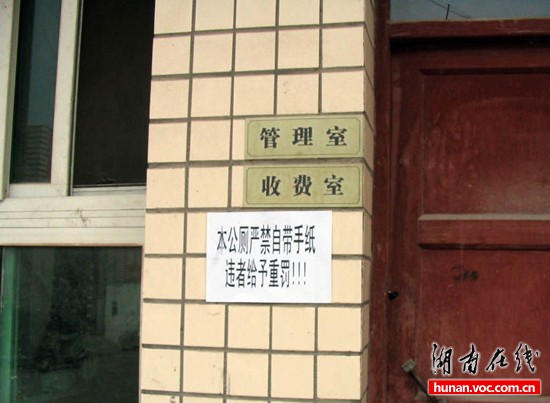 “本公厕严禁自带手纸,违者予以重罚!!!”近日,有网友在华声、网易、猫扑等论坛发图爆料称,武汉某公厕禁止自带手纸,网友戏称为“史上最霸王公厕”。
