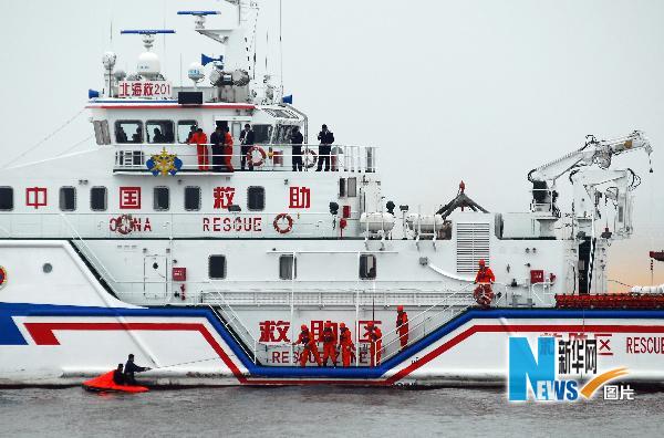 当日,山东省海洋与渔业厅、交通运输部北海救助局和北海第一救助飞行队联合在威海石岛港附近海域举行海上渔船应急救援联合演练,以提高海洋与渔业系统和专业救助部门联合应对海上渔船突发事故和险情的快速反应能力、应急处置能力和协调救援能力。新华社发(初阳 摄)