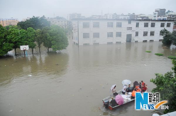 从5月31日晚开始,广西部分地区遭受特大暴雨袭击。截至6月1日9时,来宾市市区出现335.6毫米的特大暴雨,内涝严重。 新华社发(卢哲摄)