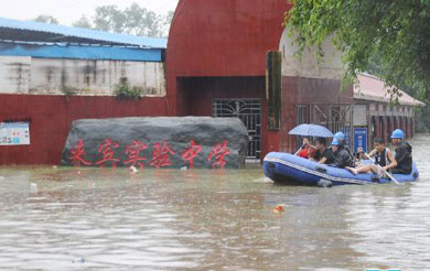 在历史罕见的特大暴雨面前,广西来宾市干部和驻地子弟兵冲在抗洪救灾的第一线,托起了灾区群众的生命之舟。新华社记者 李斌 摄