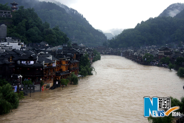 6月8日,沱江水位暴涨,凤凰古城部分街道被淹。