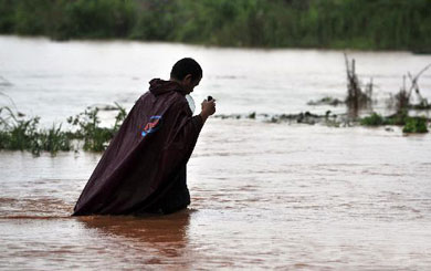 6月18日,山东省临沂市郯城县新爱婴幼儿园的小朋友展示自己制作的环保“卡通爸爸”作品。