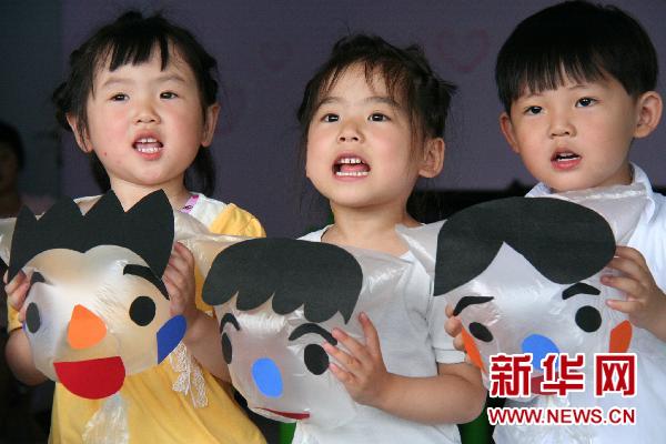 当日,临沂市郯城县新爱婴幼儿园组织小朋友开展“小手巧制作喜迎父亲节”活动,孩子们用废旧物品制作出环保“卡通爸爸”作品,迎接即将到来的父亲节。 新华社发(张春雷 摄)