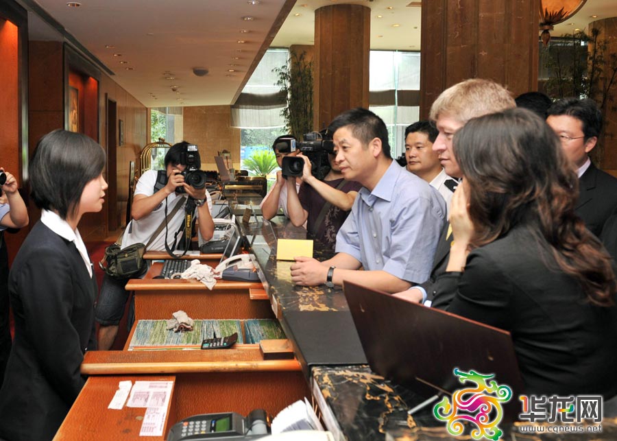 重庆市公安局副局长高晓东率警方检查验收组,在希尔顿酒店检查验收前台登记情况 市公安局供图 华龙网发