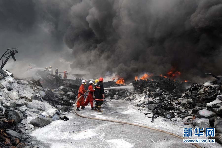 6月29日,消防员在火灾现场扑救。当日7时许,位于北京市房山区石楼镇的燕房华兴公司仓库发生火灾,40台消防车赶到现场扑救。目前火势基本得到控制,是否有人员伤亡情况不明。新华社记者李文摄