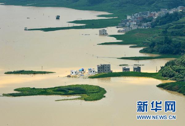 7月1日,在广西凌云县逻楼镇祥福村百合屯,通往外界的道路全部被洪水淹没。 6月27日至29日,广西壮族自治区百色市凌云县遭遇300年一遇的强降雨天气过程,造成全县严重洪涝灾害。因为洪水无法外排,目前凌云县逻楼镇出现严重内涝,洪水深近两米,通往外界的道路全部中断,部分村屯被围困,有6673人受内涝影响。新华社记者 周华 摄