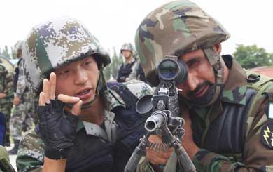 7月5日,3位女孩在天津大学喷泉广场戏水降温避暑。