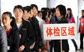应征女青年参加征...