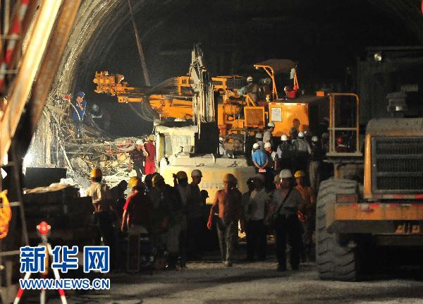 7月14日,救援人员在挖掘救援通道。当日上午,发生坍塌事故的新建南黎铁路那适2号隧道次发生事故的隧道再次发生塌方,救援人员与被困人员失去联系,使得救援工作受阻。目前,救援指挥部正在积极探明坍塌情况,调整救援方案。 新华社记者 黄孝邦 摄