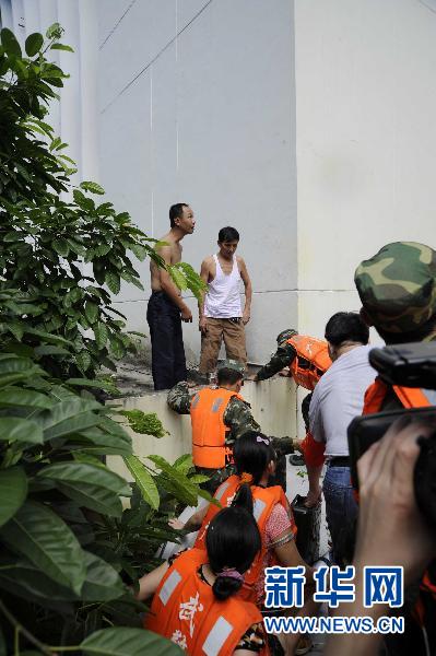 7月19日,武警官兵正在转移受灾群众。 7月19日,记者从四川省广安市广安区防汛办获悉,18日开始,受渠江上游地区普降暴雨影响,渠江广安城区段水位不断上涨,到19日17时,水位达25.66米,超警戒水位9.16米。这是自1847年以来广安区发生的最大洪水。洪涝灾害已造成该区24个乡镇成为重灾区,46万名群众受灾,6.52万间民房受损,41公里路面冲毁,46座桥梁损毁,电力、通讯设施212处受损。截至记者发稿时,尚未接到因灾伤亡的报告。新华社记者 李桥桥摄