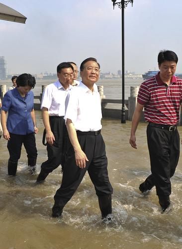 在防汛抗洪的关键时期,温家宝于23日来到湖北武汉检查指导防汛抗洪工作。下午3时许,他一下飞机就来到汉口龙王庙险段实地察看汛情。这里位于长江和汉江交汇处,河道狭窄,水流湍急,是长江著名险段之一,也是武汉防洪的心腹之患。1998年大水后进行了大规模的综合整治,防洪能力大大提高。防洪墙外的观江平台已被江水淹没。温家宝趟着一尺深的江水,考察了龙王庙综合整治区。“现在长江武汉段的水位是多少?”他关切地问道。“27.13米。这是入汛以来的最高水位。”当地负责人回答道。“流量呢?”“每秒51200立方米。”从雨情到水情,从汛情到灾情,从防汛抗洪到群众生活安排,温家宝问得十分细致。当听到长江上游和汉江上游最近又降暴雨水势正在上涨时,温家宝叮嘱道,要再接再厉,充分准备,迎接新一轮洪水的考验。