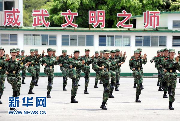 7月25日,学员们在结业典礼上表演军体拳。当日,为期15天的第六届香港青少年军事夏令营在驻港部队新围军营举行结业典礼。200名香港中学生走进驻港部队军营,用汗水学会“吃苦”,学会独立,学习长大。据悉,军事夏令营为青少年安排了丰富多彩的内容,包括体能、拳术、行军、基本队列动作、实弹射击等训练,以及有关国家历史和军队知识的讲座,参观军营、观看电影、普通话诗歌朗诵等活动。新华社记者 宋振平 摄