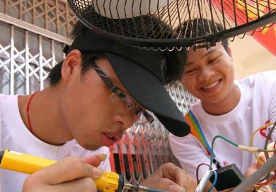 8月3日,美国中学生在南京市参加包饺子活动。近日,参加“汉语桥”美国高中生夏令营的80名美国中学生来到南京市第一中学,他们在这里开展为期10天的夏令营活动,他们将学习汉语以及中国书画、剪纸、中国结、京剧脸谱和陶艺等传统艺术,并参观当地城市乡村、历史古迹和住宿学生家庭,参加民间民俗活动,体验中国文化。新华社记者孙参摄