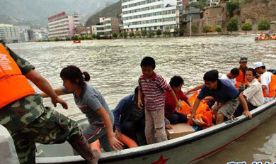 冲锋舟为舟曲受灾...