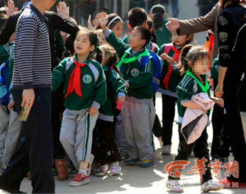 “你学习不好,戴绿领巾,我才是真正的红领巾……”西安市未央区第一实验小学门口,两个放学的孩子嬉闹起来,来接佩戴绿领巾孩子的家长的表情尴尬。