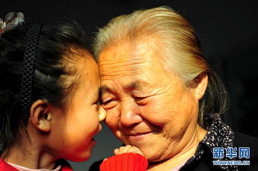 祖孙俩偎依在一起,感情深厚(10月22日摄)。新华社发(姜冰 摄)