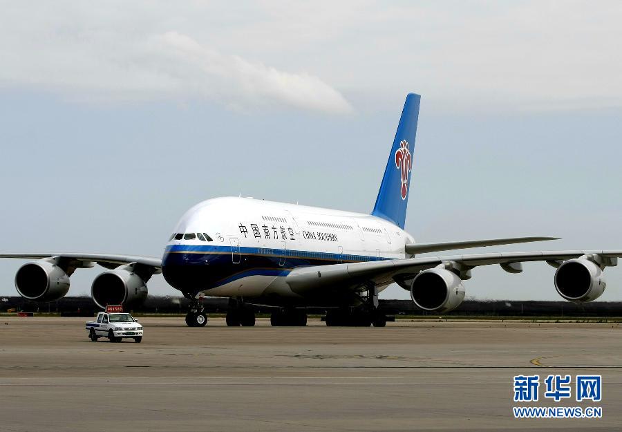 10月27日,南航空中客车A380飞机正缓缓滑向停机位。当日,中国南方航空公司向空客订购的A380飞机抵达上海浦东国际机场,这也是中国首架空客A380飞机。据悉,近期南航的A380将执行北京往返上海的航班。新华社记者 陈飞 摄