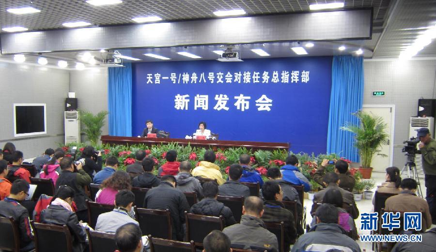 10月31日,天宫一号/神舟八号交会对接任务总指挥部举行新闻发布会,新闻发言人武平向中外媒体记者介绍任务有关情况。