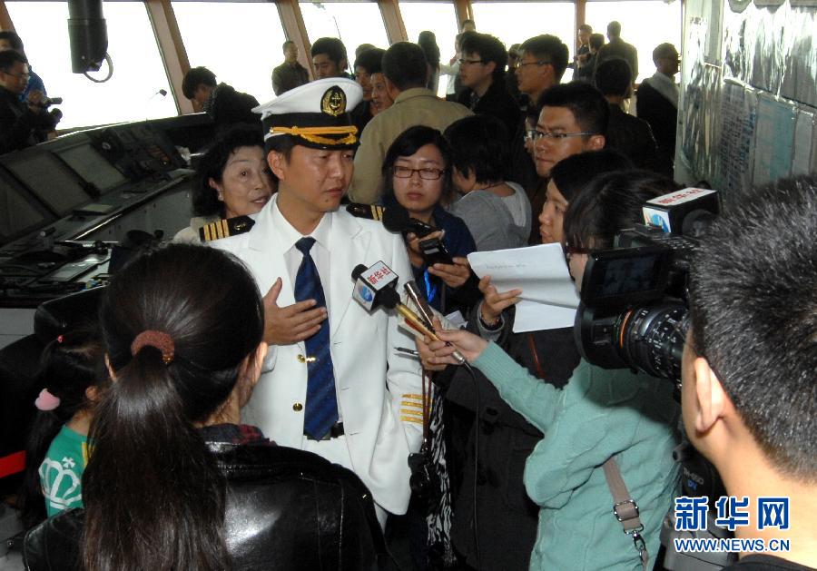 11月1日,“雪龙号”南极科考船船长沈权在驾驶舱内接受媒体采访。当日,南极科考船“雪龙号”在天津邮轮母港对公众开放,千余名对极地科考感兴趣的市民和中小学生登上“雪龙号”,一睹其风采。据了解,“雪龙号”在天津短暂停留后,将于11月3日从天津邮轮母港出发,前往南极执行中国第28次南极科学考察任务,本次科考航程将达31000海里,计划于2012年4月上旬返回上海。新华社记者 张超群 摄