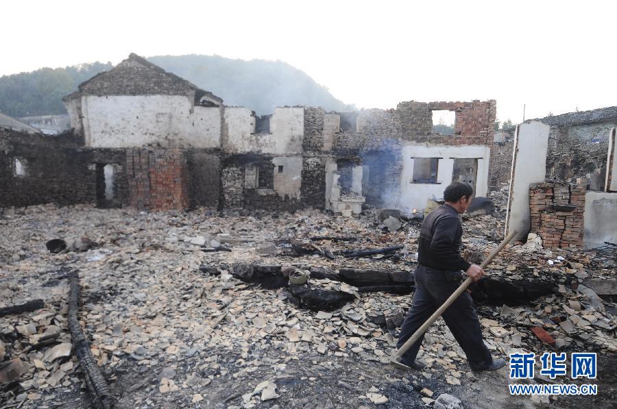 11月12日21时40分许,叶家山自然村发生火灾,过火面积1900多平方米,72间老房被烧毁。起火房屋中仅有9户15人居住,火灾发生后居民被及时疏散,未造成人员伤亡。13日上午,宁海县有关方面给受灾农户送去了服装、棉被、大米等生活必需品。 新华社发