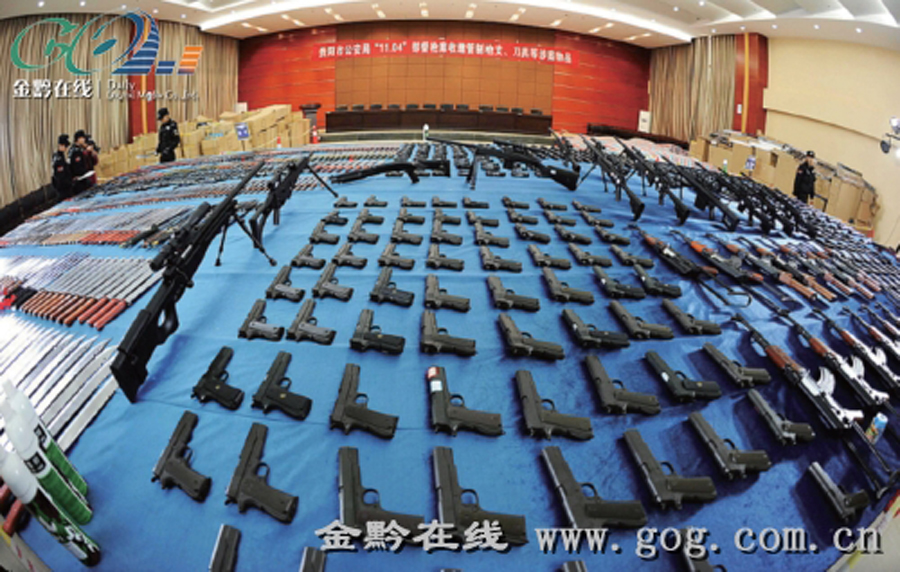 近日,贵阳警方侦破了一起特大制造、贩卖枪支、管制刀具的案件,共收缴枪支1万5千支,管制刀具12万把,目前有15名涉案的犯罪嫌疑人被警方抓获,这个犯罪团伙的制贩网络覆盖了湖南、广东、四川、贵州等27个省、区、市。