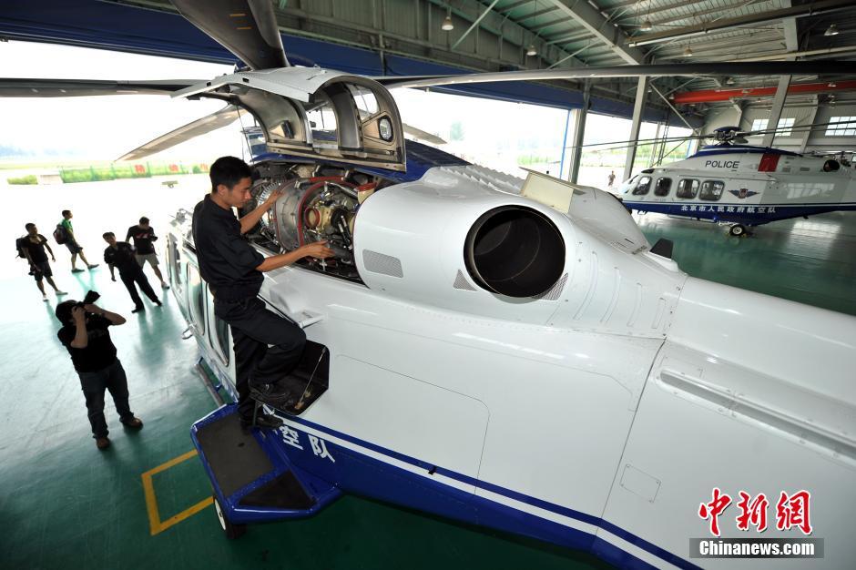 7月14日,北京警务航空总队首次面向媒体开放。针对目前北京的反恐形势,警航总队制定了8条航线,几乎包含了北京的全部重点区域,包括大型交通枢纽、火车站、公交场站、商贸市场、公园景区等人员密集场所及外围检查站和进出京主要道路。摄影:金硕