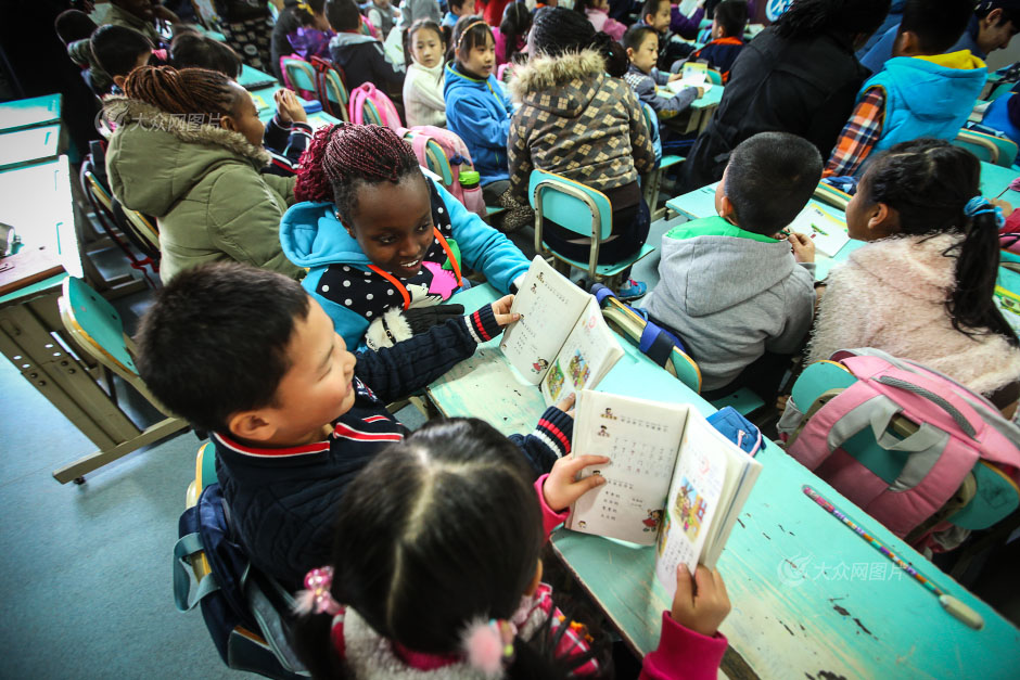 大众网济南11月12日讯(记者 姜洋 王长坤)11月12日,来自38个国家的二百余名山师大国际交流学院留学生到山东师附小进行友好访问,分别走进一年级和五年级课堂,与孩子们进行了丰富多彩、趣味盎然的联谊活动。活动中同学们和留学生一起载歌载舞、尽情游戏,大家在互动中交流中增进相互了解,品味异国文化差异,两个年级各具特色,精彩瞬间不断呈现。