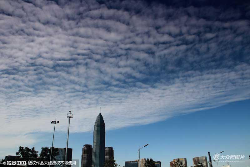 2015年12月4日,浙江绍兴天空现鱼鳞云。今年受厄尔尼诺影响,与往年相比,绍兴冬季的气温明显比同期要高,偶尔还会出现类似夏季的风景(与整天雾霾笼罩、灰蒙蒙一片的冬季完全不同)。