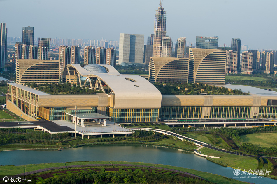 2016年08月18日,浙江省杭州市,G20主会场杭州奥体博览城迎来“G20蓝”。