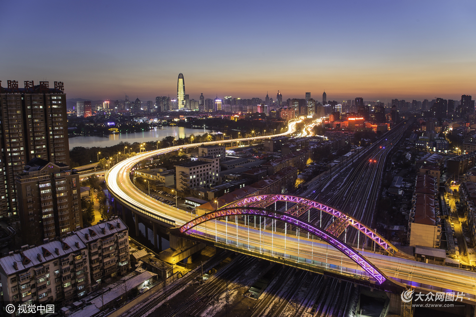 2016年11月23日,山东省济南市,小雪过后,济南天气通透,日落时分,天边出现美丽的日落黄昏。