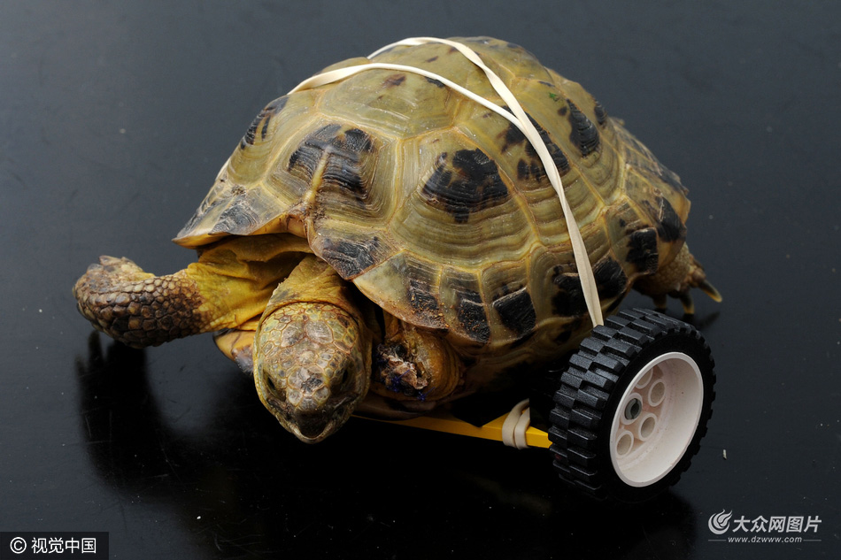 2016年12月8日讯(具体拍摄时间不详),英国班伯里,7岁的乌龟Vince遭狗袭击,不幸失去一条腿,并且有生命危险。主人Kara Paynton寻找工程师为Vince用玩具轮子打造义肢,如今Vince能自如活动。